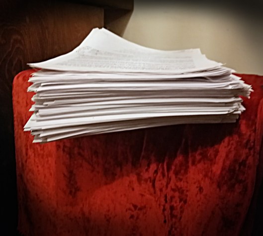 By printing it out myself it exists as a book already, canny eh? This means that should the Gods and medium-sized frogs dispense with my chatter for some idle reason there is a hard copy (misses), it isn’t virtually locked away. I don’t trust virtual files at all, plus, it seems madness to me to send a book off to the publishers without having read it in book form beforehand. Things look very different in real life (also due to scale).